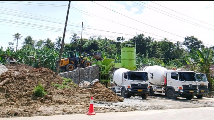 Batching Plant Portaible Sementara di Desa Bolang Dorong Pembangunan Jalan Rabat Beton Akses Pertanian Mendapat Dukungan dari Masyarakat Setempat