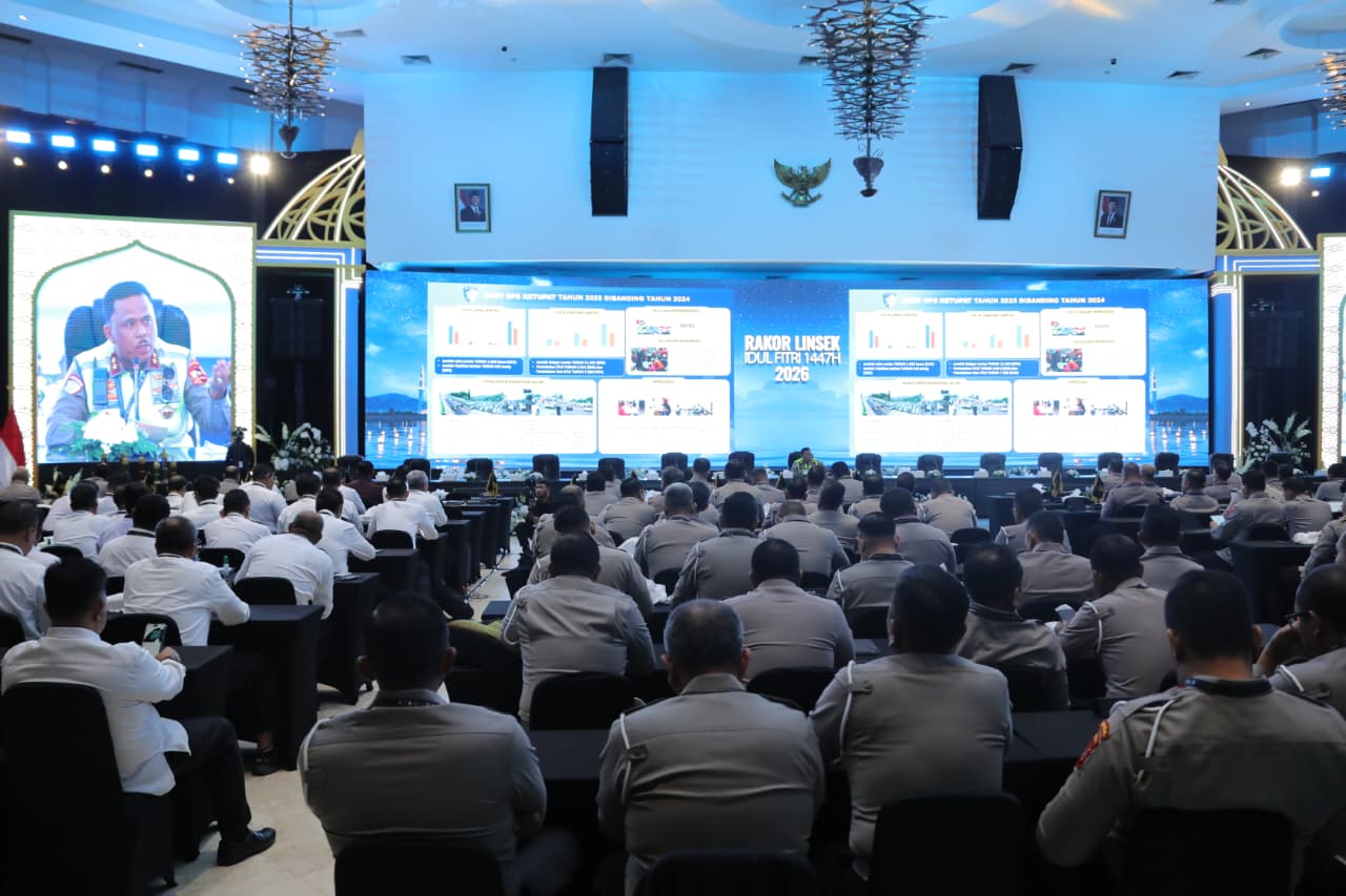 Rakor nasional tersebut dihadiri para Kapolda se-Indonesia dan kementerian/lembaga terkait guna menyamakan persepsi serta strategi pengamanan arus mudik dan balik Lebaran 2026.