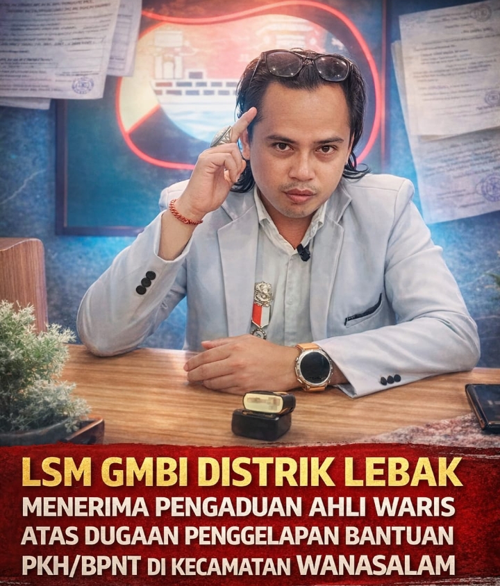 jejakkasuspaltv.com | Lebak – 28 Maret 2026 — Dugaan penggelapan bantuan sosial kembali mencuat di Kabupaten Lebak. Kali ini terjadi di Kecamatan Wanasalam, di mana LSM GMBI Distrik Lebak menerima pengaduan resmi dari ahli waris terkait bantuan Program Keluarga Harapan (PKH) dan Bantuan Pangan Non Tunai (BPNT) yang diduga tidak pernah diterima, meskipun tercatat aktif dan telah dicairkan.