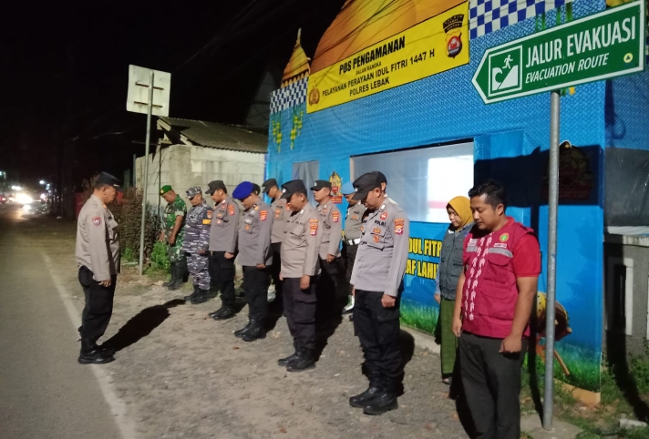 jejakkasuspaltv.com | Lebak – Guna memastikan situasi tetap aman dan kondusif pada malam takbir Hari Raya Idul Fitri 1447 H, Polsek Wanasalam polres Lebak, polda Banten bersama instansi terkait melaksanakan Apel Persiapan Pengamanan di jalur jalan raya binuangen depan gerbang keluar masuk pantai binuangen, kecamatan Wanasalam Kabupaten Lebak. juma,at ,mlm saptu (20/3/2026). Pukul 20.30 wib.