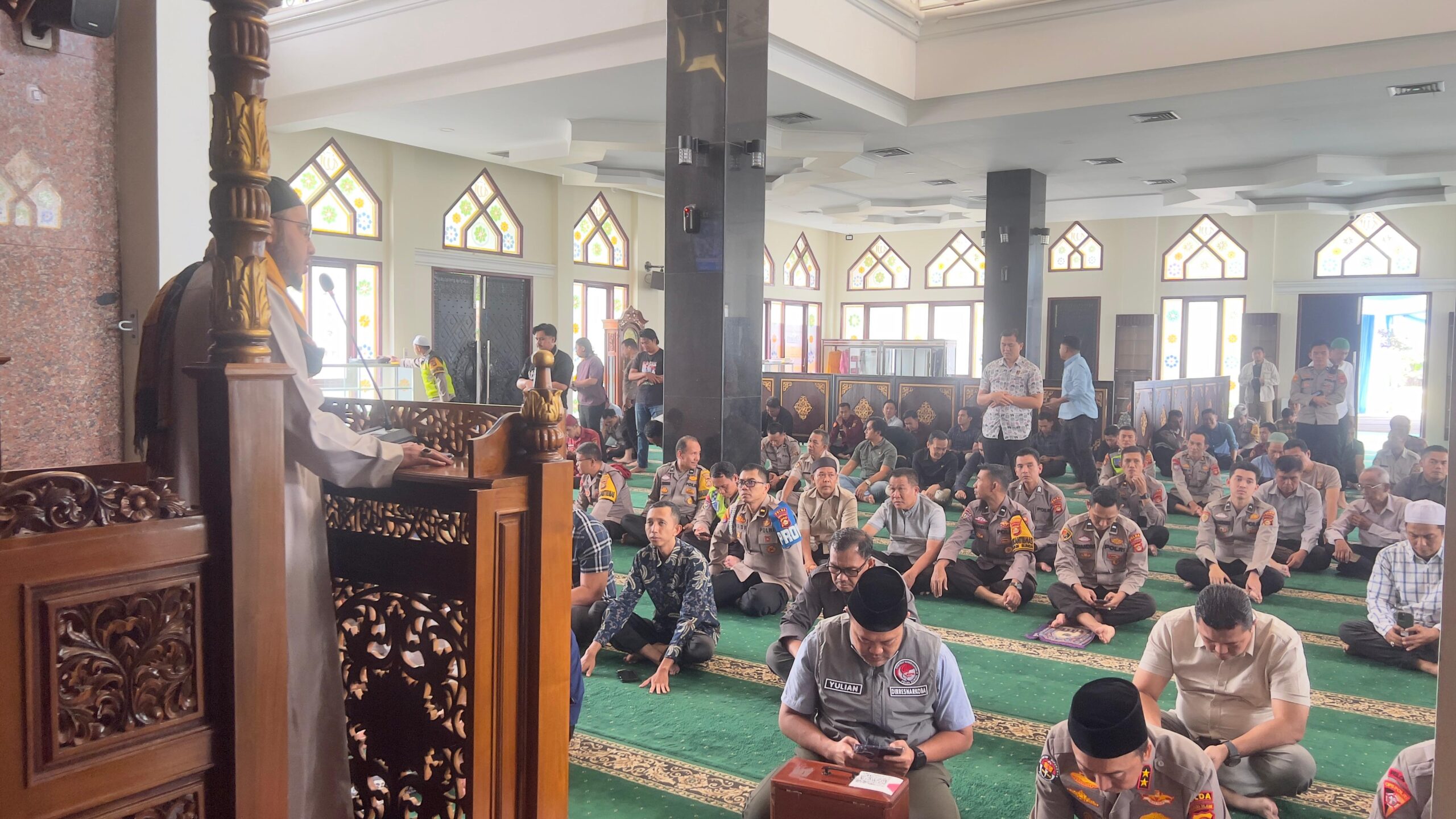 jejakkasuspaltv.com | Palembang – Mengisi bulan suci Ramadan 1447 H dengan kegiatan positif, Personel Polda Sumsel menyelenggarakan Pembinaan Rohani dan Mental (Binrohtal) bagi personel yang beragama Islam. Kegiatan bertajuk “Hikmah Puasa di Bulan Suci Ramadhan 1447 H” kegiatan rutin yang dilaksanakan setiap bada sholat Zuhur selama dalam bulan suci Ramadhan bertempat di Masjid Assa’adah Mapolda Sumsel Jalan Jenderal Sudirman Palembang, Kamis (12/03/2026).