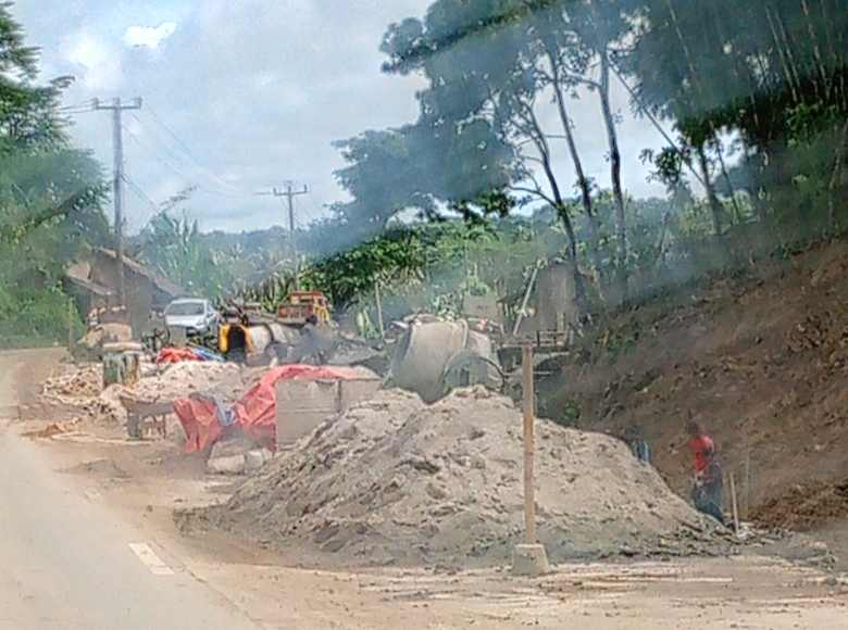 Pantauan awak media di lokasi menunjukkan bahwa material proyek seperti pasir, batu, dan tanah galian dibiarkan menumpuk di bahu hingga badan jalan di ruas Jalan Baru, Desa Malingping selatan. Tidak hanya itu, area sekitar proyek tampak dipenuhi genangan lumpur, yang membuat jalan menjadi licin dan berbahaya bagi para pengendara, khususnya sepeda motor.