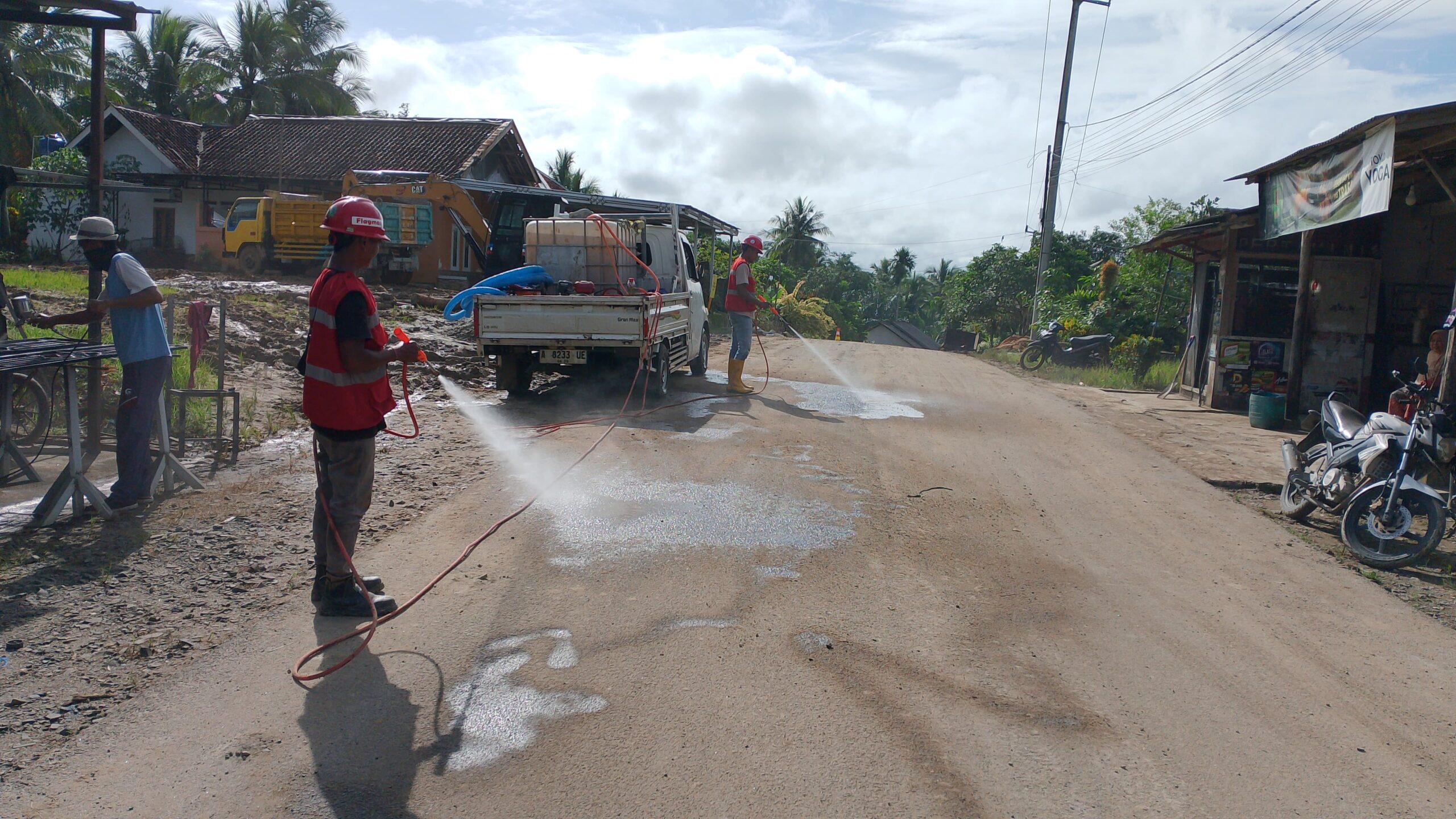 Hujan yang turun tanpa henti dalam beberapa hari terakhir membuat kondisi jalan menjadi licin serta mengganggu kenyamanan pengendara. Mengetahui hal tersebut, pihak proyek langsung menurunkan sejumlah pekerja untuk melakukan penyemprotan dan pembersihan lumpur di sepanjang badan jalan.